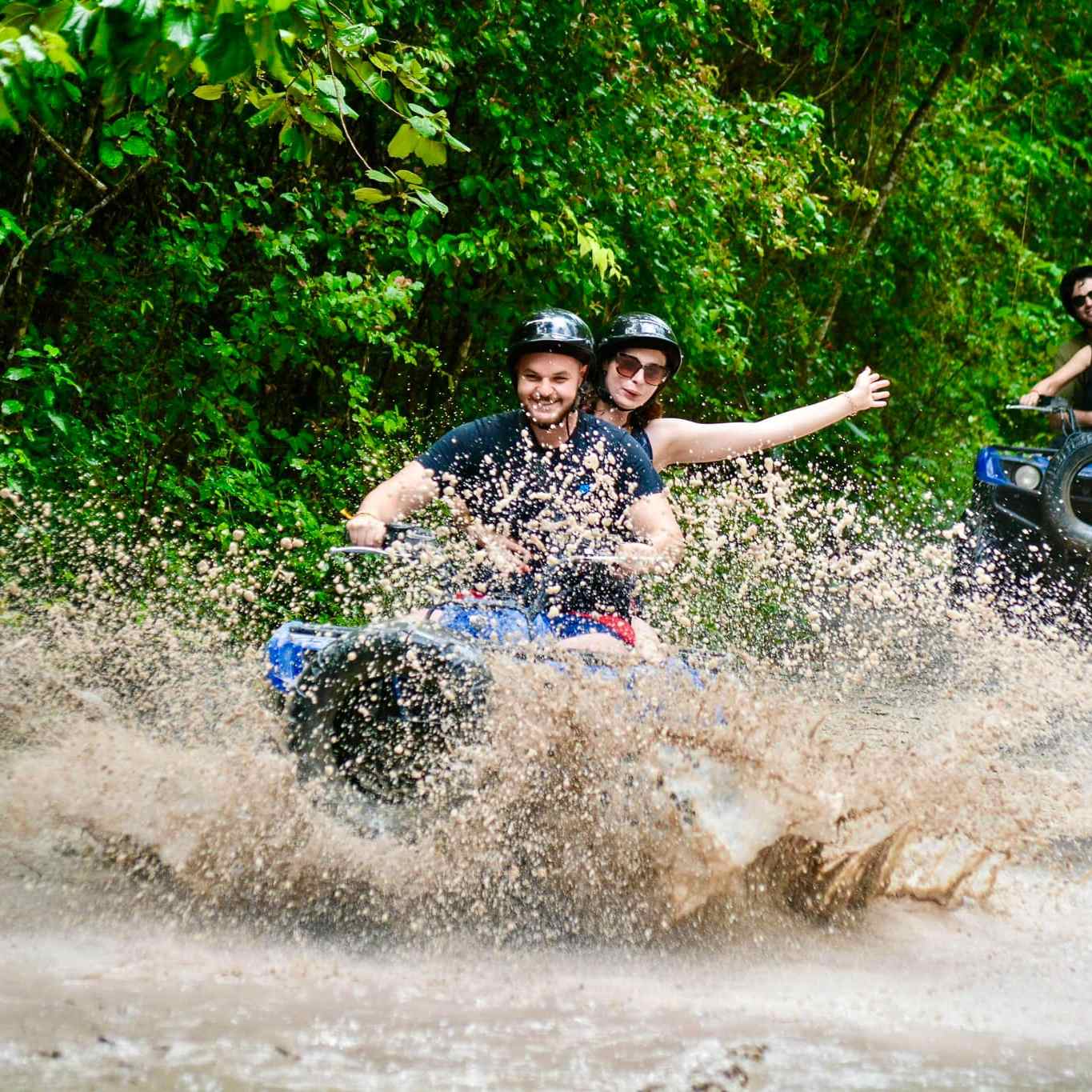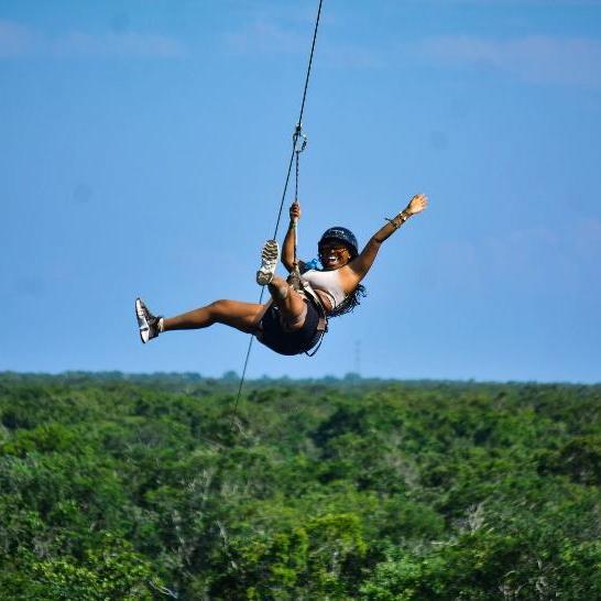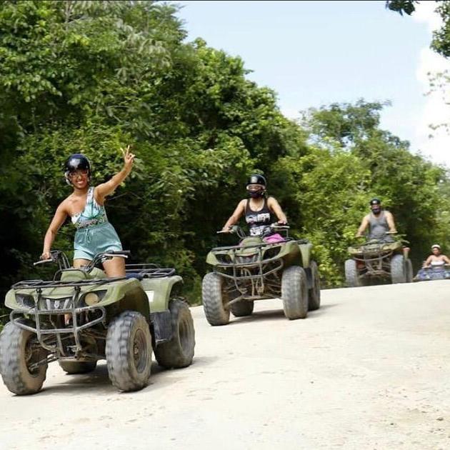 Embarquez pour une aventure sensationnelle au cĆur de la jungle de la Riviera Maya en quad sur un circuit de 18 km, visitez 2 magnifiques cenotes oĂč vous pourrez vous baigner et vous rafraĂźchir, une incroyable caverne Maya pour une pause dĂ©tente et profitez de la vue panoramique depuis notre tyrolienne de plus de 400 mĂštres de long.